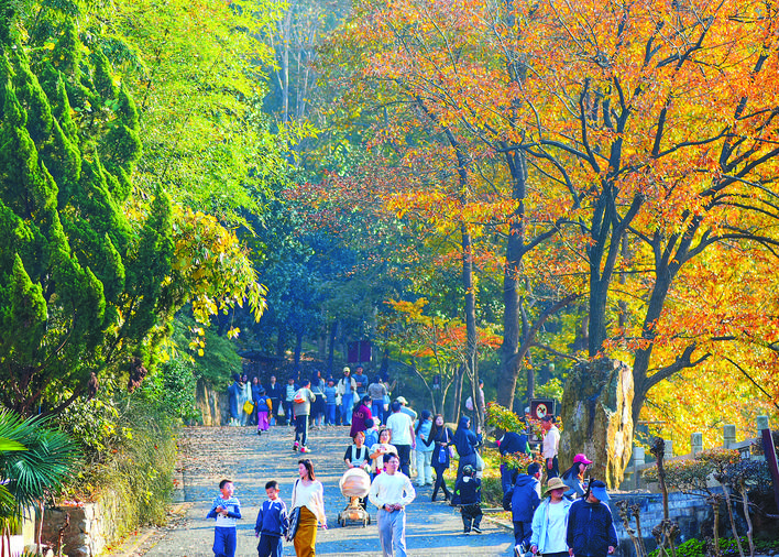 随着连日来的晴朗暖和的天气,巢湖市南郊的森林公园成了天然的“调色板”。市民携家人朋友前来打卡,温暖的阳光照在树叶上,映照着游人的笑脸,构成了一幅动人的冬日风景画。这是获得最佳叶子颜色的好时机。记者宋阳东 摄